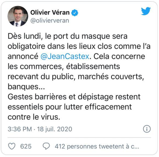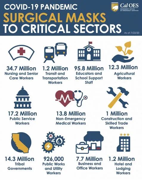 但加州州长办公室应急服务处的发言人布莱恩·弗格森(Brian Ferguson)并没有提供纽森口罩提供计划的详细信息。同时,加州医院协会会长卡梅拉·科尔(Carmela Coyle)批评称,加州此前给各个医院提供口罩的渠道十分混乱。很多时候,医院只有在个人防护用品存量极低,在区域协调人的帮助下,才能获取口罩。另外,加州当地媒体“Calmatters”报道称,自疫情暴发以来,加州政府曾一度向许多未经验证的供应商购买医用品。在其中的一个案例中,加州3月曾向一家仅注册3天的公司支付了近5亿美元,用以购买1亿枚N95口罩。但最终加州政府还是取消了订单,并拿回了这些钱。当地时间22日,加利福尼亚州已超越纽约州,成为目前美国国内新冠肺炎确诊病例数最多的州。据约翰斯·霍普金斯大学的疫情数据显示,截至当地时间22日上午,加州所累计报告的确诊病例数比纽约州多出了约1100例。纽森则在当天中午透露,过去的24小时里,加州新增12807例确诊病例,创下自疫情暴发以来的单日新增最高纪录,累计确诊病例数也达到了413576例,约占全美总确诊病例数的十分之一。加州是美国最早发现疫情的州之一,也是在3月中旬率先实施“居家令”的地区。但随着5月份逐步解除防疫禁令,加州的确诊病例、住院人数和死亡人数均出现大幅上升。《华盛顿邮报》指出,加州几所监狱暴发了聚集性传染,是造成疫情扩散的原因之一。而该州部分地区的大规模集会活动也引发了新的感染。尽管加州在一个月前发布了全州范围的强制口罩令,但至少有5个县拒绝执行。法国卫生部长韦兰当地时间7月18日表示,将从7月20日起在所有室内公共场所强制佩戴口罩,其中主要包括商店、公共接待场所、室内市场以及银行等。