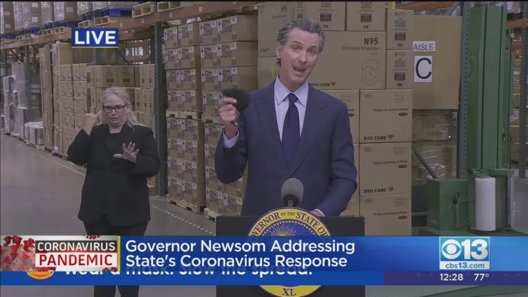 纽森22日在新闻发布会上强调口罩的重要性 视频截图