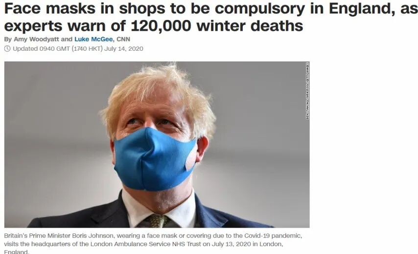 关于戴口罩,英国终于出了强制规定。从7月24日起,在英格兰的商店和超市内必须戴口罩,未遵守新规的人将面临高达100磅的罚款。此举将使英格兰、苏格兰与西班牙、意大利和德国等其他主要欧洲国家保持一致。