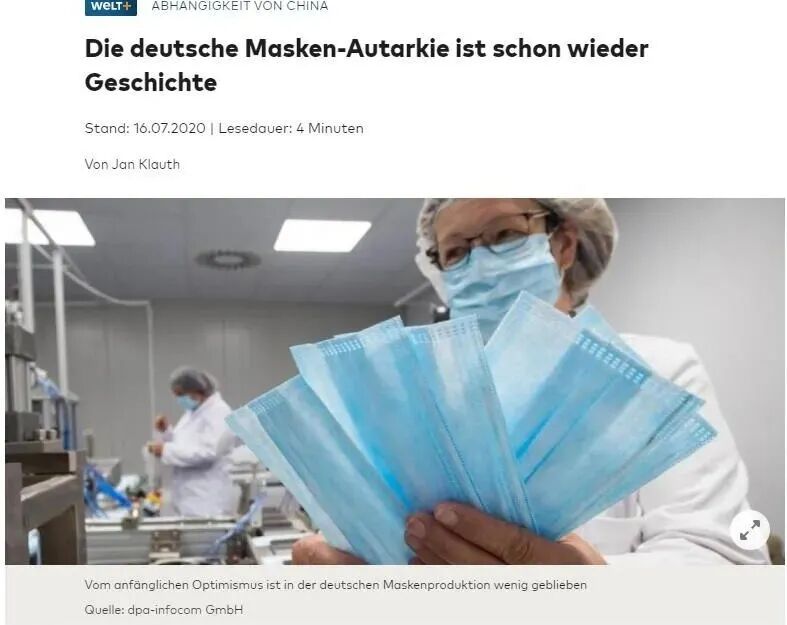 德国开始大批进口中国口罩,口罩生产“去中国化”失败